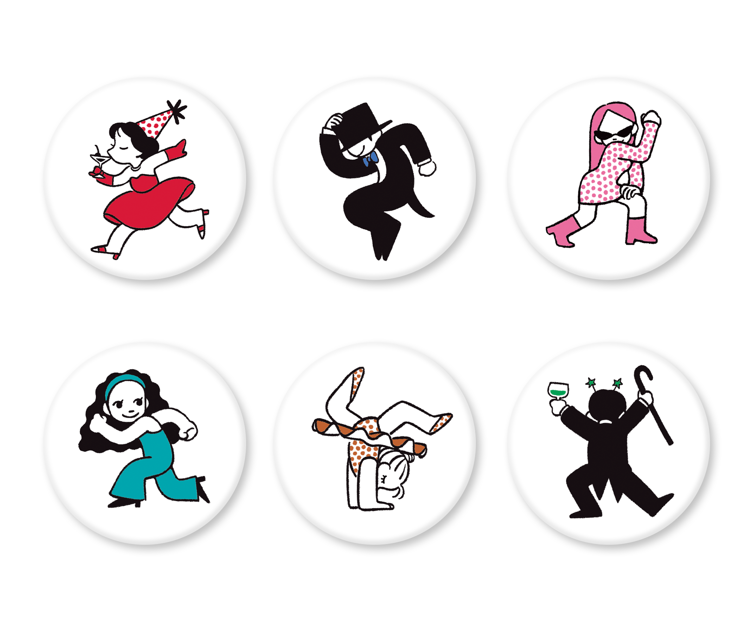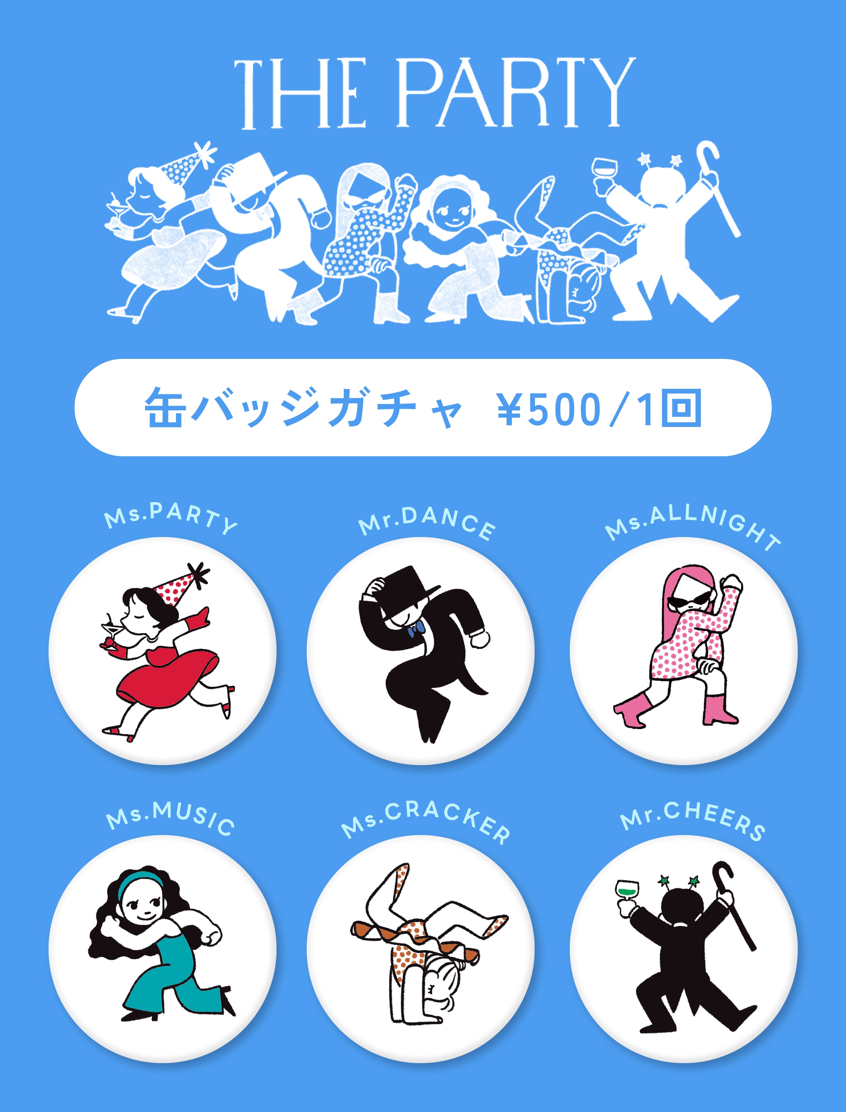 THE PARTYのメインビジュアルキャラクター6種類の缶バッチです。